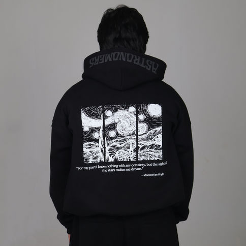 The Astronomers Black Hoodie Set is crafted for those who move quietly but think infinitely. Made from premium-quality fabric with a soft inner feel, it delivers all-day comfort without compromising on style. The deep black tone gives it a bold, versatile look that pairs effortlessly with any outfit.